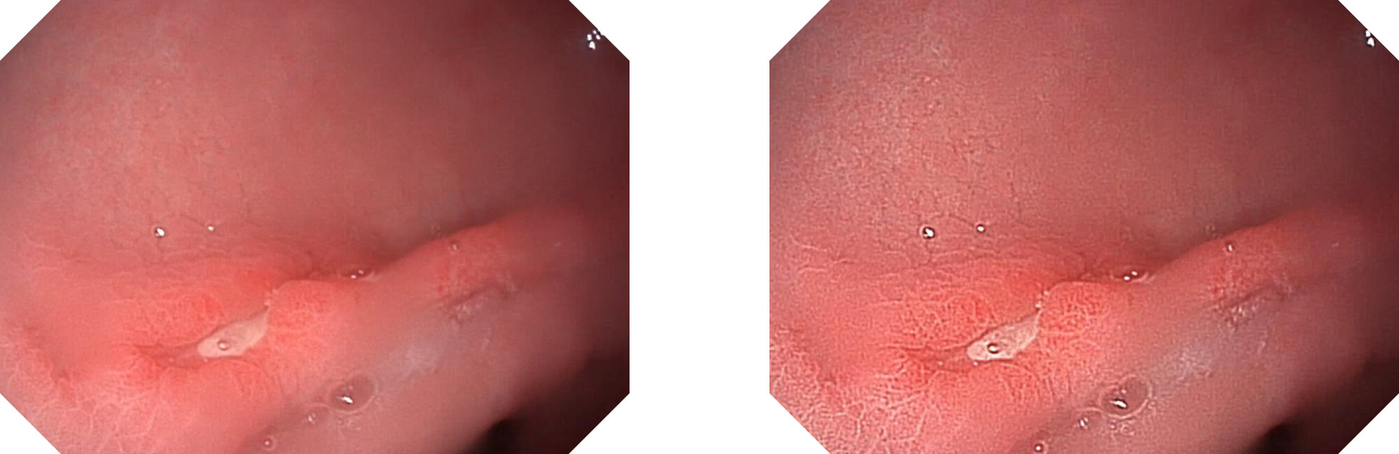 利用了血红蛋白在不同波长吸收下系数不同的原理,设计的一种光学域滤波和数字域滤波结合的染色技术,既保证了图像亮度,又可增强黏膜血管的对比度,充分凸显早期病变的细微结构变化,为临床疾病的观察诊断提供更丰富的参考信息。